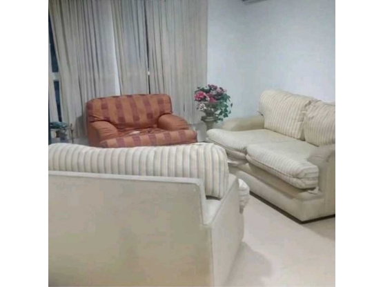 Totalmente amoblado: cama matrimonial y una individual, closet solo en cuarto principal, juego de recibo y de comedor,